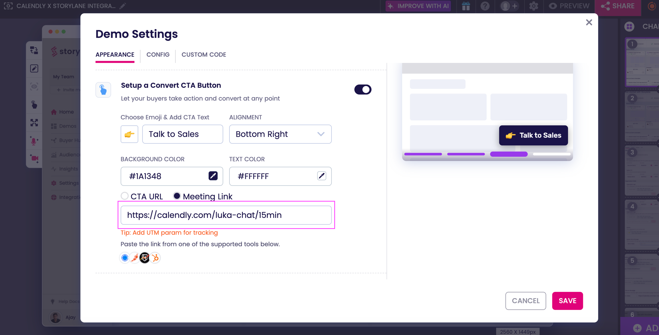 • Live Calendly calendar integration within Storylane interface