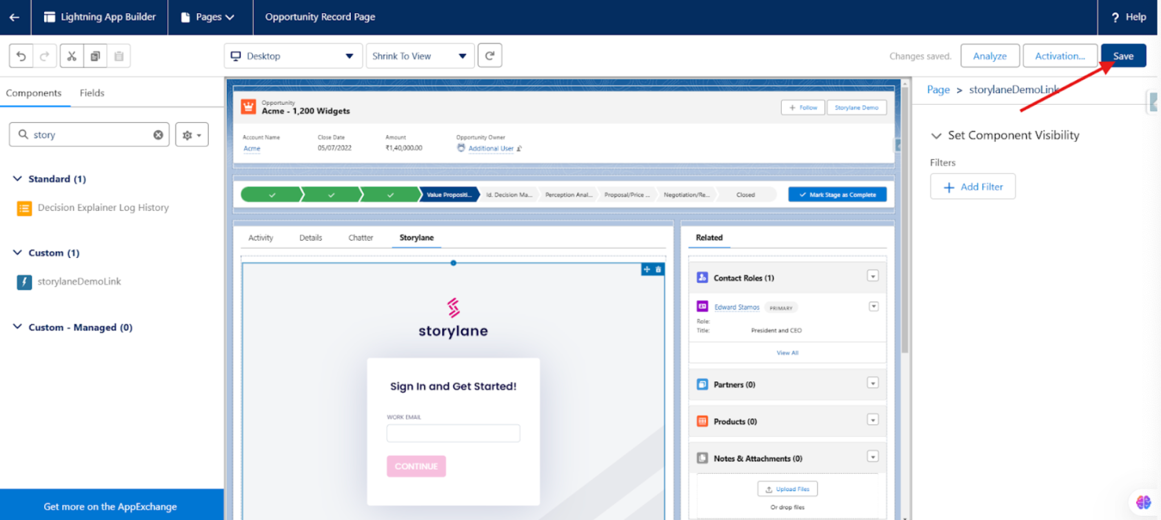 After completing these steps, you can access Storylane directly from the Opportunity record page tab.