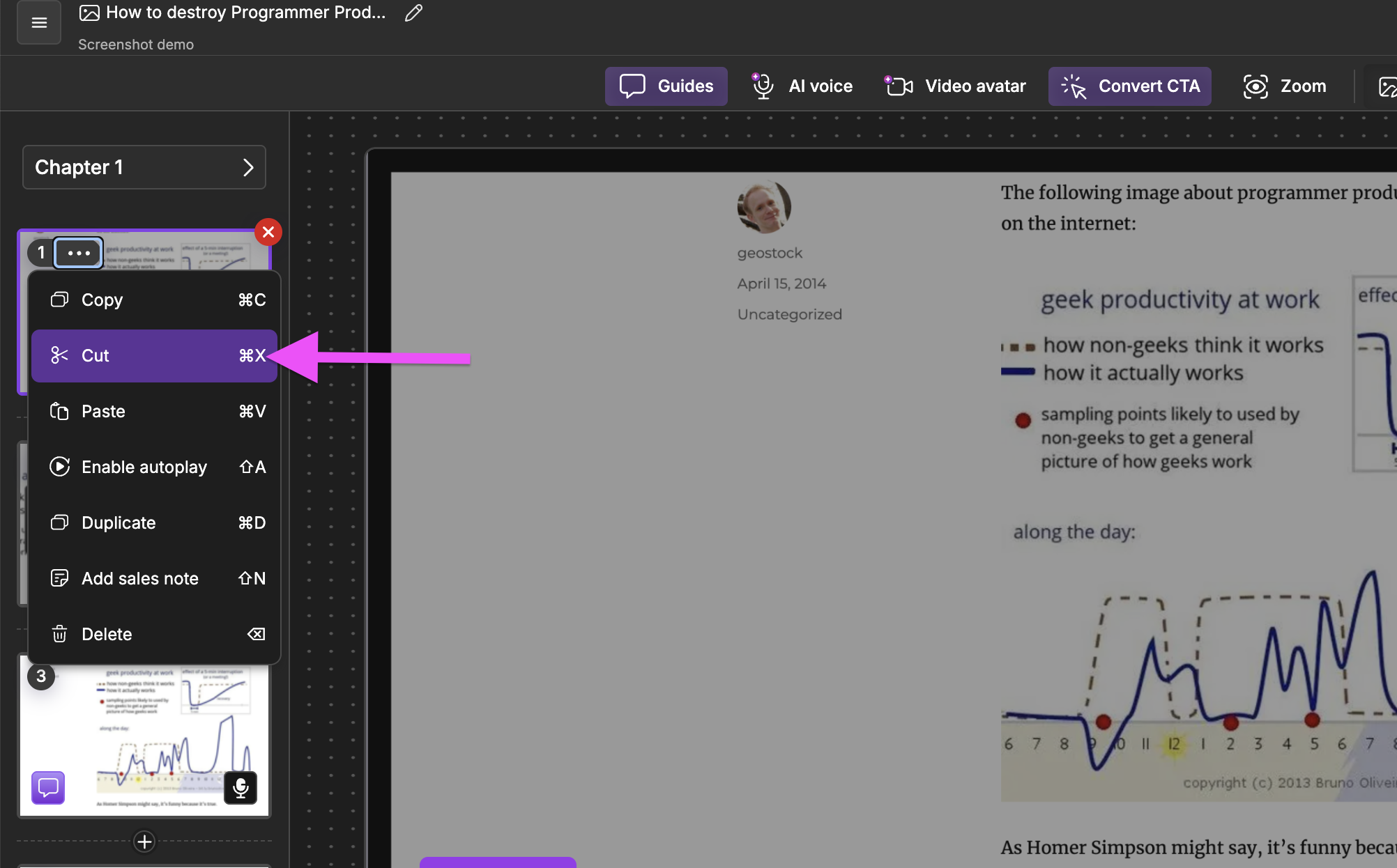 Creating demos just got smoother. You can now **cut and paste steps across chapters and demos.**