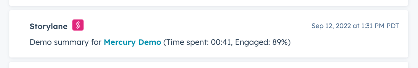 Each demo session creates a custom timeline activity in HubSpot. This includes multiple demo views and engagement history. Here's a reference below: