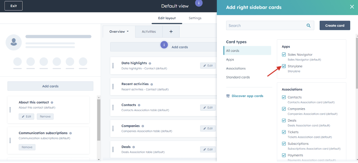 ### Step 1: Add the Storylane Card to HubSpot's Contact Sidebar