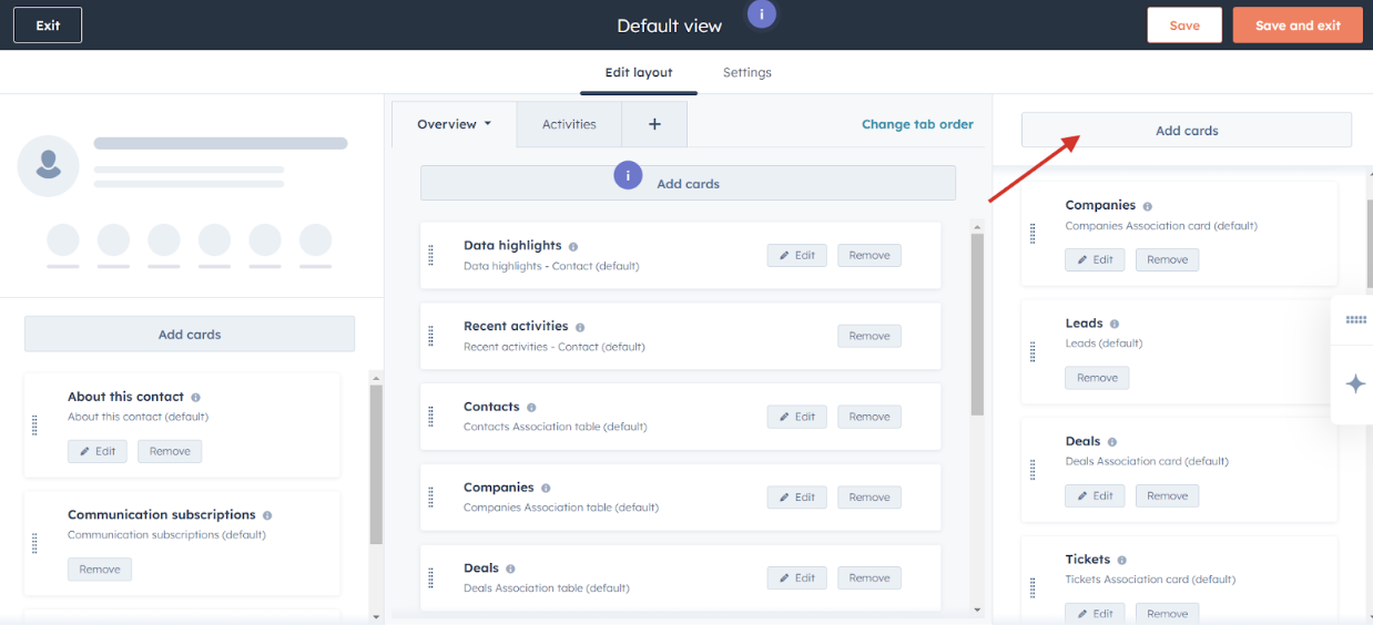 1. Navigate to Contact Edit Layout in your HubSpot account.