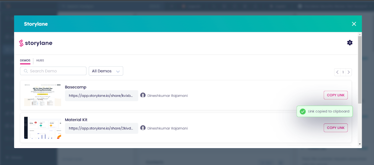 Click Copy Link next to the desired demo to copy the tokenized URL to your clipboard.