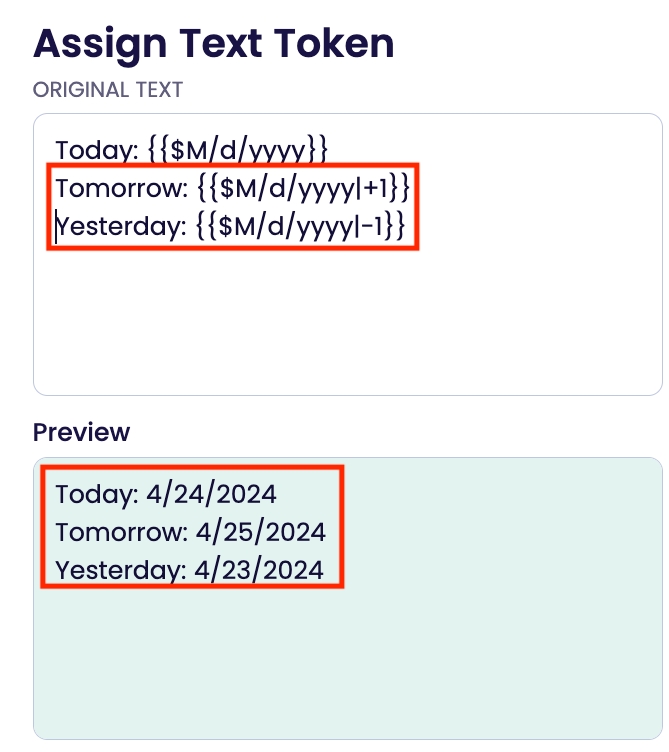 Date and Time tokens enhance demos, especially in products where date and time are important in the data which is reflected in the demo. Adding and subtracting date/time tokens further enhances the "realness" your user will feel when viewing your demo.